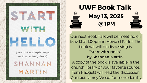 In small group studies, classes and special events, we nurture discipleship for all ages. We seek to better understand and practice the 'Wesleyan way' of the Christian story.