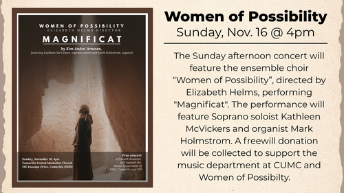 Women of Possibility is a musical group and concert initiative dedicated to uplifting women’s voices and talents in the community. The group showcases performances led and inspired by women. Through their performances, Women of Possibility support local musical culture and provide opportunities for women to share their artistic gifts.